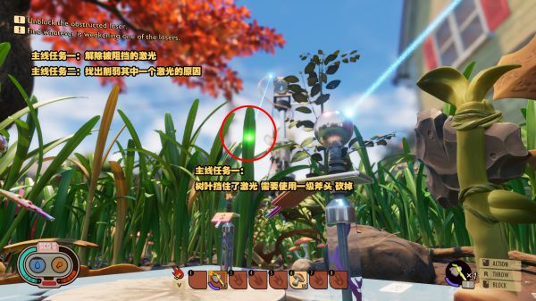 擋住激光的葉子需要用斧頭砍掉即可完成