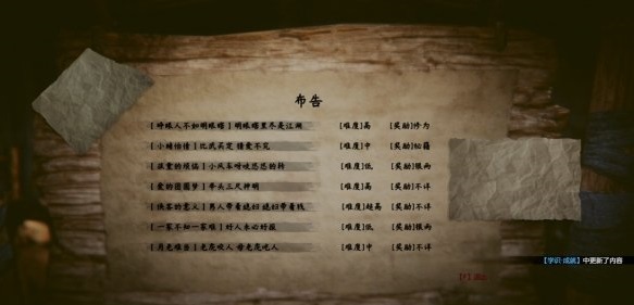 在游戲中玩家可查看公告板,了解當(dāng)前章節(jié)所能接取的支線任務(wù)。在第一章中,共有七個(gè)支線任務(wù)。