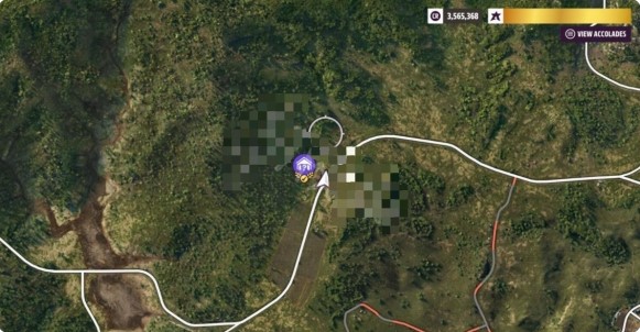 這個(gè)車庫(kù)寶物比較難找,雖然有路通向這里,但附近的路線都很長(zhǎng),而且周圍還有很多樹林,很容易迷路。在山邊的森林深處多轉(zhuǎn)幾圈應(yīng)該就能找到。前往下圖所示位置,在向左拐之前應(yīng)該就能看到一條土路。
