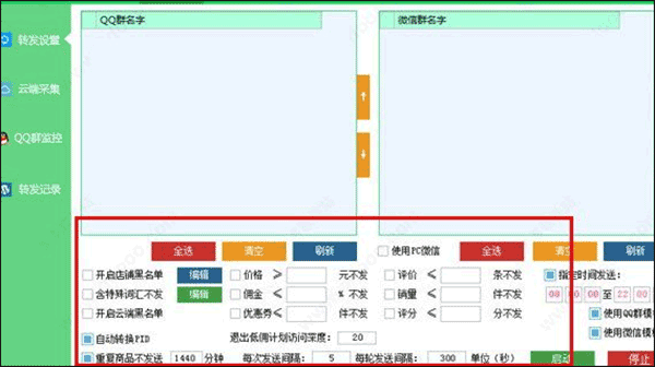 5、這個(gè)就是轉(zhuǎn)發(fā)的界面,可以在這里輸入自己的商品鏈接,點(diǎn)擊下方的過濾黑名單、設(shè)置發(fā)送條件