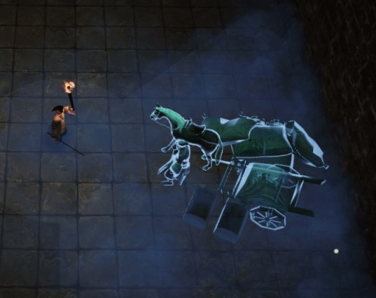 這里需要玩家拖動(dòng)對(duì)應(yīng)爐火顏色的臺(tái)柱到紅圈位置,拖完以后大門(mén)打開(kāi),門(mén)前的兩口棺材瞬間破棺而出,然后雙宿雙飛。