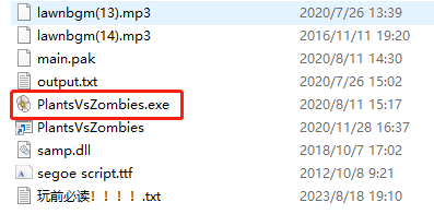 1、在本站下載解壓植物大戰(zhàn)僵尸TF版,雙擊PlantsVSZombies.exe游戲程序即可啟動(dòng);