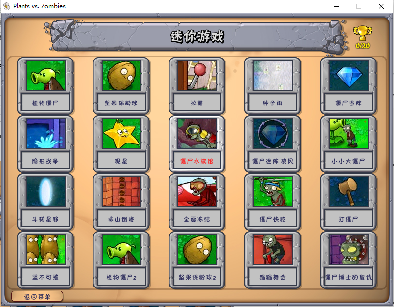 4、無論是迷你游戲、益智模式、生存模式均解鎖完成;