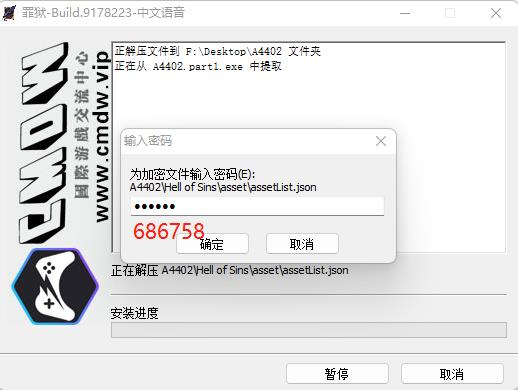 2、雙擊“A4402.part1.exe”程序進(jìn)入游戲解壓步驟,然后輸入安裝碼“686758”;