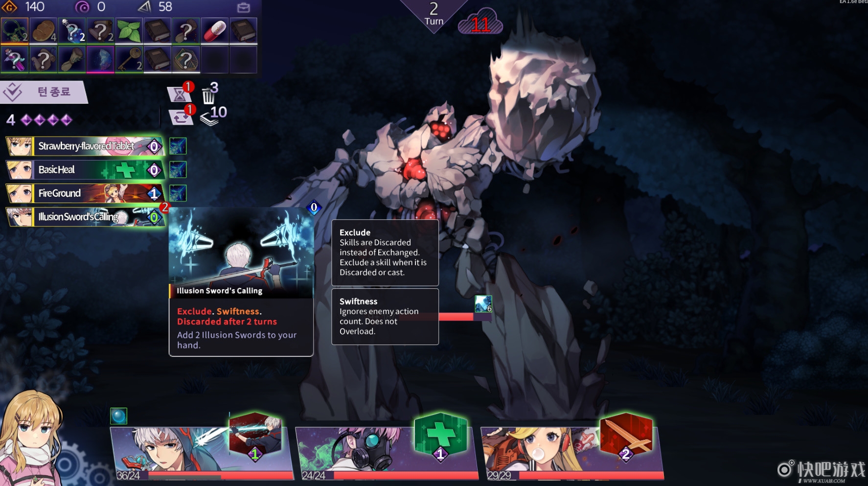組隊戰(zhàn)斗卡牌構筑最多招募4名隊員,通過使用卡牌形式的技能和能力與怪物進行戰(zhàn)斗。您可以制定最佳的策略,通過角色之間的配合,打造最強的組合。隊員和主人公露西的技能是以卡牌形式在戰(zhàn)斗中使用。當然您可以自己選擇學習哪一個技能!