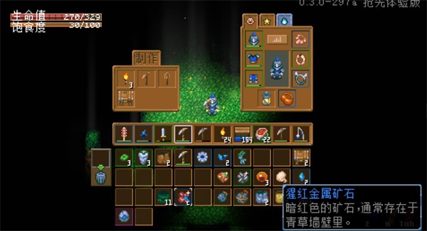 三王打完了回家核心對(duì)話,別著急走,解鎖最外層墻壁,再往前走,會(huì)遇到一種敲不了的墻壁,先沿著墻壁走。直到找到青草墻壁,就有猩紅金屬礦石了。