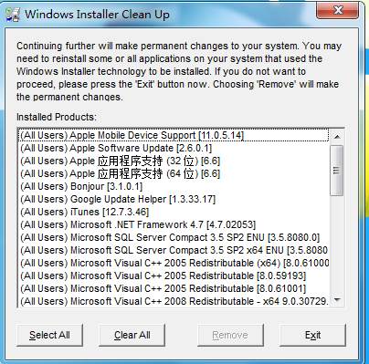 在彈出的列表中選中需要卸載的程序,點擊單擊 Remove(刪除)按鈕。這樣該應用程序就會從 Windows Installer 數(shù)據(jù)庫中被刪除。