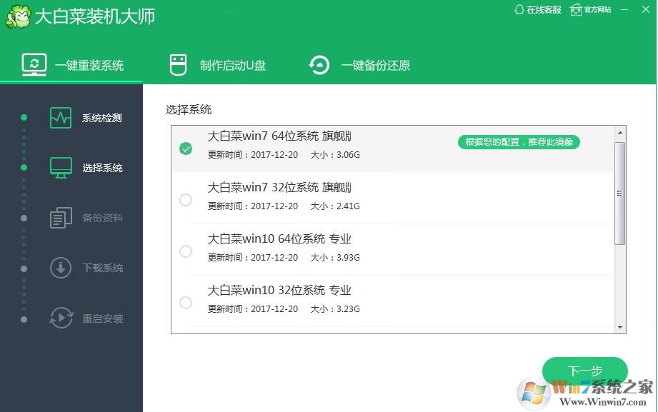 2、第二步,檢測完成后接下來是選擇你要重裝的系統(tǒng),然后點擊下一步;