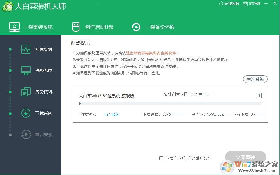 4、下載系統(tǒng)中,Win7系統(tǒng)的話,估計下載要10幾分鐘,(滿速)