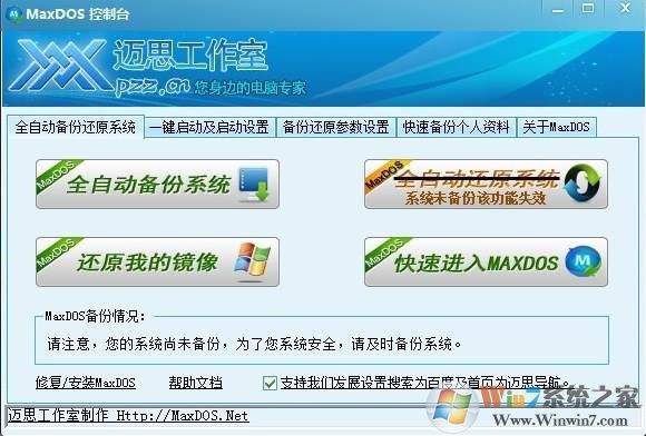 4、完成安裝,啟動桌面上的一鍵備份還原即可啟動maxdos控制臺,同時系統(tǒng)重啟后可以選擇在maxdos中操作。