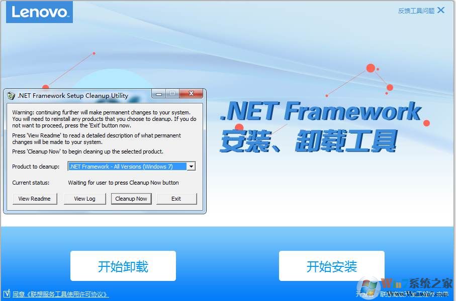 如果遇到電腦上.net Framework無(wú)法卸載的話,可以使用該工具進(jìn)行卸載。如下圖,點(diǎn)擊開(kāi)始卸載,然后選擇你電腦上的.net版本,點(diǎn)擊cleanup now 就可以開(kāi)始卸載了。