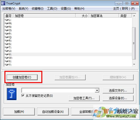1、下載軟件后解壓即可使用(如安裝版需要先安裝)點擊“創(chuàng)建加密卷“按鈕;