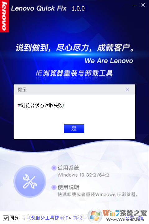 2、如果當(dāng)前IE瀏覽器處于啟用狀態(tài),界面按鈕會(huì)切換到卸載瀏覽器狀態(tài),如果IE瀏覽器狀態(tài)讀取失敗,則會(huì)提示失敗信息。如圖4: