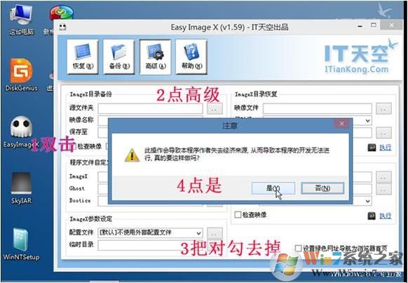 如果想保持系統(tǒng)純凈,每次打開“ Easy Image X ”時(shí),(不管是恢復(fù)還是備份)請(qǐng)把這項(xiàng)取消。
