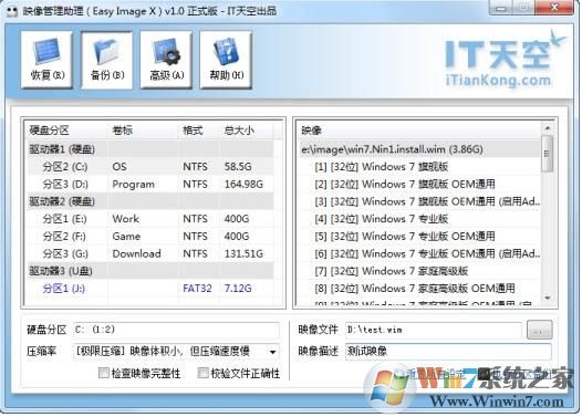 (2)ImageX映像支持一個(gè)映像中包含多個(gè)子映像,Ghost映像不支持此功能;