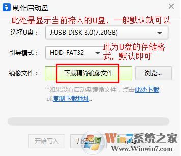 第三步:點擊“下載精簡鏡像文件”。(注:如果電腦接入了多個U盤,請注意選擇用來制作啟動盤的U盤?。。。?br />