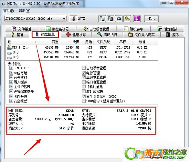 4、硬盤信息下可以看到硬盤的固件,序列號等相關(guān)的信息。其中序列號很多軟件用來綁定授權(quán),硬盤離開這機器就無法使用該軟件