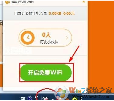 安裝成功后,在電腦右下角有個wifi標(biāo)志,點擊--然后點擊開啟免費wifi的按鈕