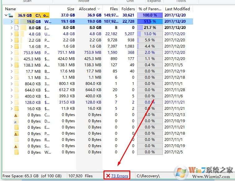 最后我們還可以看到檢測完成之后出錯的那些系統(tǒng)文件哦。