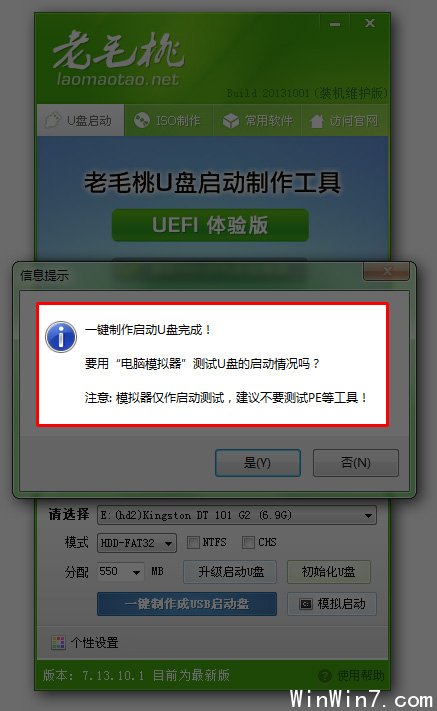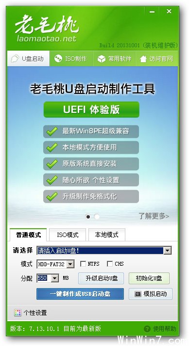 第二步:用老毛桃U盤裝系統(tǒng)軟件制作啟動U盤