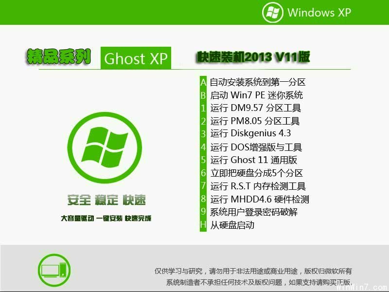 軟件名稱:精品系列Ghost XP sp3 快速裝機(jī)版DVD V11