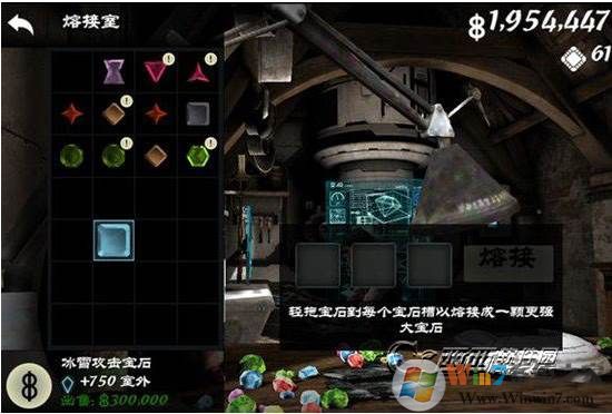 最后,我們?nèi)毷懈罱衬睦?,把抽到?0W寶石放到融合槽里,會(huì)發(fā)現(xiàn)在融合槽里可以賣掉,錢增加了30W。