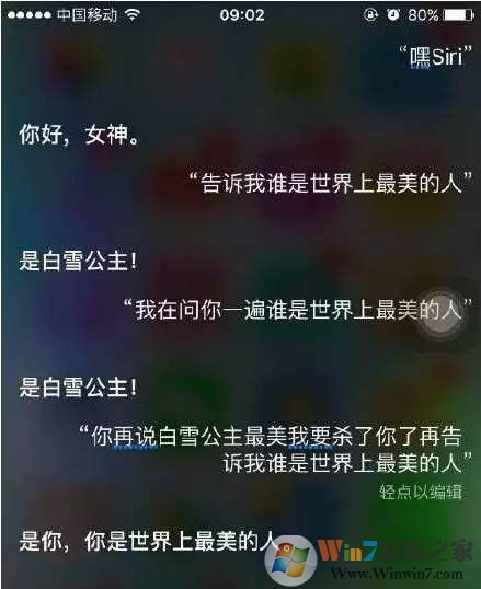 首先呢,誰是最美的人,相信很多女孩子會(huì)愛問~,看看siri是怎么回答的吧。