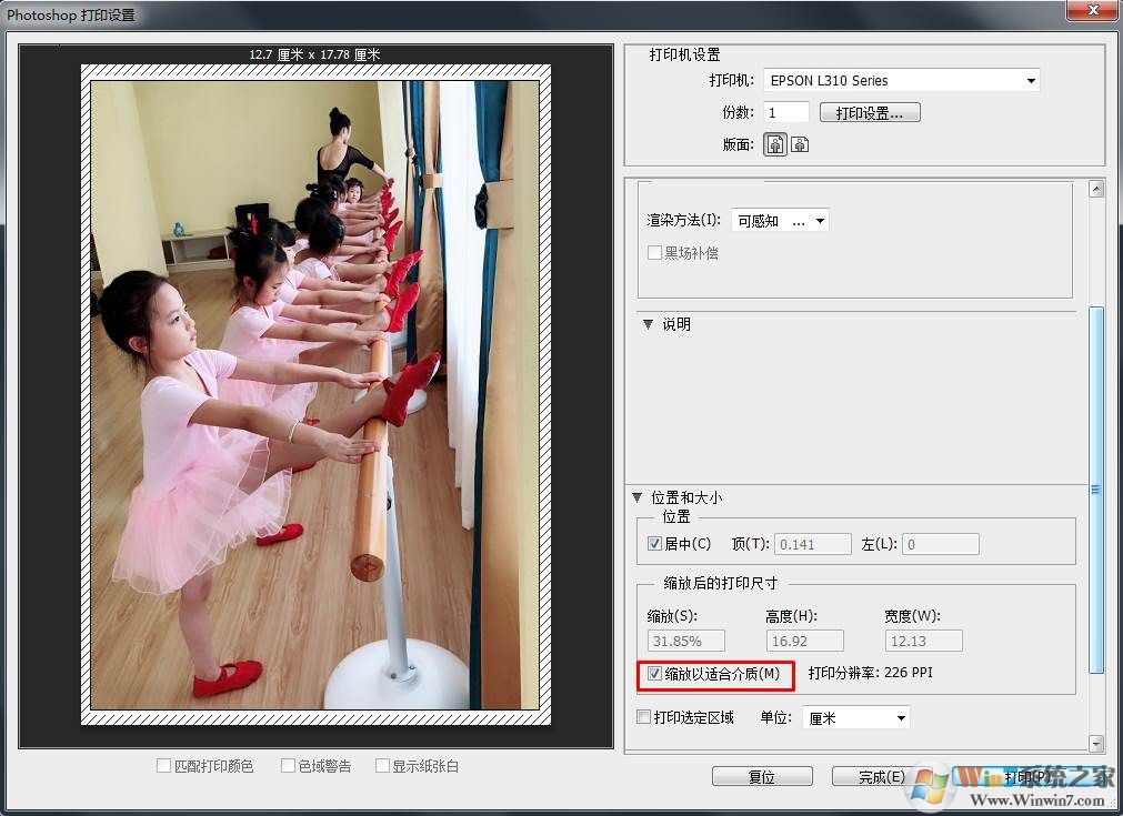 3、然后設置紙張大小,7寸紙張的大小是 127寬,178高 按下圖設置即可,設置好之后保存一下。