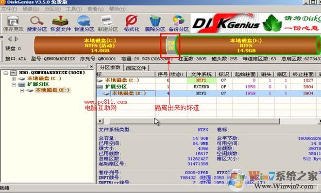 特別說明:之所有是14GB就是把剩下的0.49的空閑空間給扔掉,不分區(qū)也就達(dá)到了屏閉磁盤這個壞道的地步了。