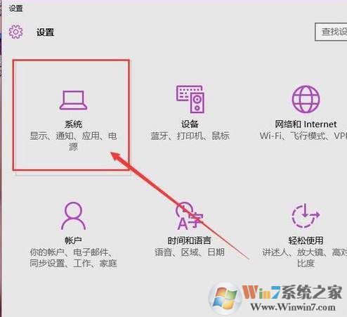 2、在Win10系統(tǒng)設(shè)置應(yīng)用中,點(diǎn)擊設(shè)置界面中的“系統(tǒng)”功能選項(xiàng),打開Win10系統(tǒng)功能設(shè)置頁面。