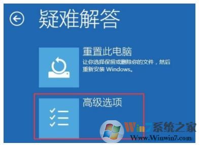 2、重啟的時(shí)候就會(huì)進(jìn)入藍(lán)色界面,我們?cè)谠摻缑纥c(diǎn)擊【疑難解答】,如圖: