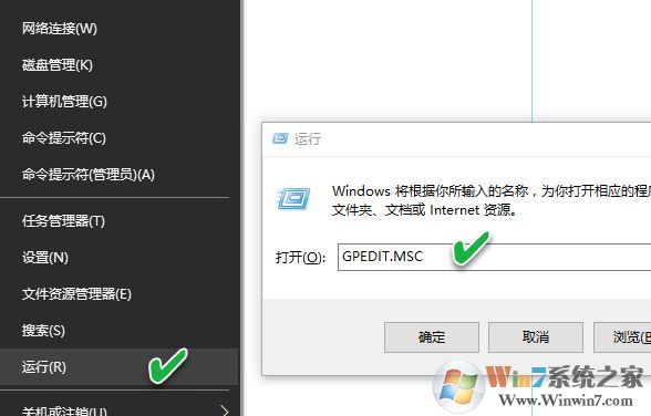 1、按下Win+X組合鍵,開啟Windows系統(tǒng)控制菜單,選擇“運行”命令進入“運行”窗口,在對話框中輸入GPEDIT.MSC并按下回車鍵,打開組策略編輯器,如圖:
