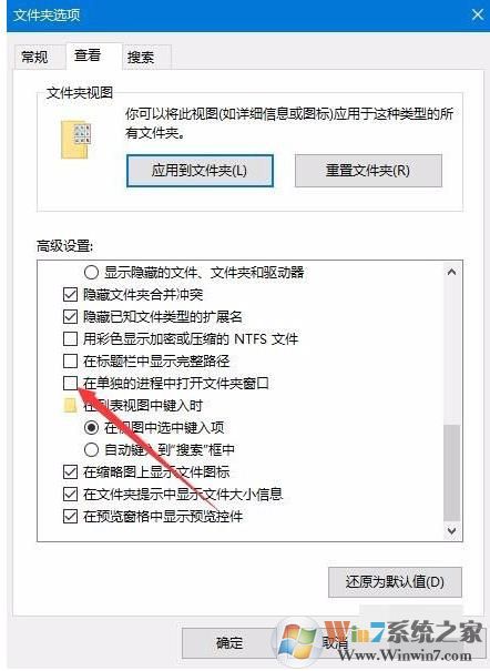 如果這個方法未能解決問題,你還可以在「文件夾選項 - 查看 - 高級設(shè)置」中找到「在單獨(dú)的進(jìn)程中打開文件夾窗口」,勾選后退出文件夾。