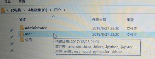 4、下圖中鼠標所指的就是你的中文用戶名,右擊重命名,改為你想使用英文的用戶名,如小編改成了user文件夾;