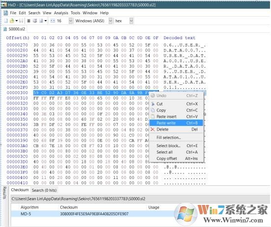 2、用下載的編輯器打開(kāi)存檔文件S0000.sl2,選中00000310到0010030F的數(shù)據(jù)。