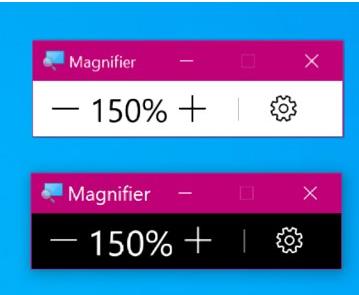 放大鏡UI現(xiàn)在適用于黑暗主題和文本大小選項(xiàng)。下圖顯示了兩個(gè)放大鏡窗口。最上面的是Light主題和默認(rèn)文本大小;底部是黑暗主題,文字縮放為125%。