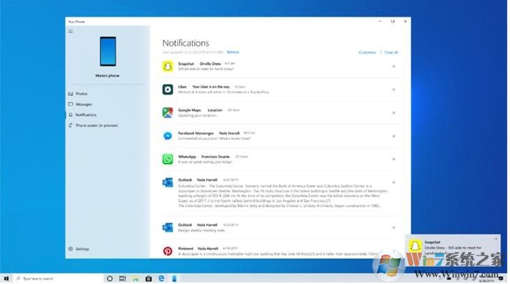 在2019 Windows 10更新五月版或更新版本的預(yù)覽測試中推出通知與手機(jī)屏幕的集成功能。如果設(shè)置手機(jī)屏幕,你的通知將在手機(jī)屏幕中打開,允許你與鍵盤、鼠標(biāo)進(jìn)行交互。如果不支持或設(shè)置手機(jī)屏幕,則點(diǎn)擊通知會(huì)轉(zhuǎn)到你的通知流。