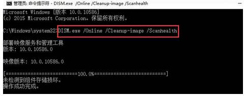 這條命令和意思是和微軟遠程服務(wù)器上的Win10系統(tǒng)鏡像進行比對,看看有沒有組件儲存損壞,如果有再用下面這個命令修復(fù)。(如果未檢測到,那么下面這個修復(fù)命令就不需要了)