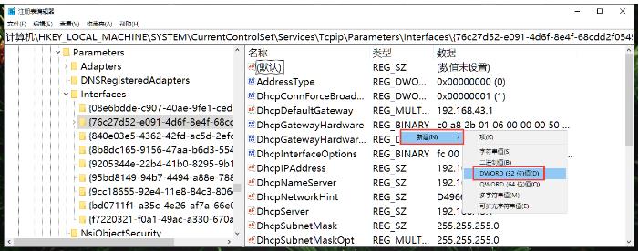 3. 在左側(cè)的interfaces文件夾下依次查看各個文件夾,找到右側(cè)的窗格中,自己正在使用或使用過的IP地址;
