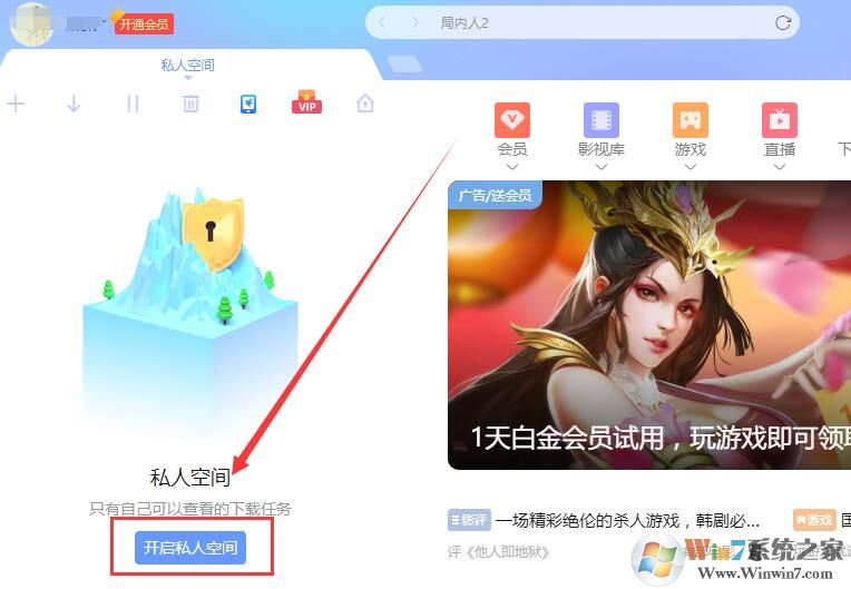 迅雷私人空間在哪打開: