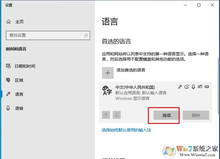 1、點(diǎn)擊任務(wù)欄輸入法圖標(biāo),進(jìn)入語言首選項(xiàng),然后我們?cè)谡Z言項(xiàng)目下,點(diǎn)擊中文—選項(xiàng),如下圖所示;