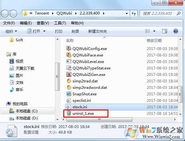 1、找到軟件的的Uninst.exe程序 如:QQ五筆 "C:\Program Files (x86)\Tencent\QQWubi\2.2.339.400\uninst.exe" 改名或刪除;