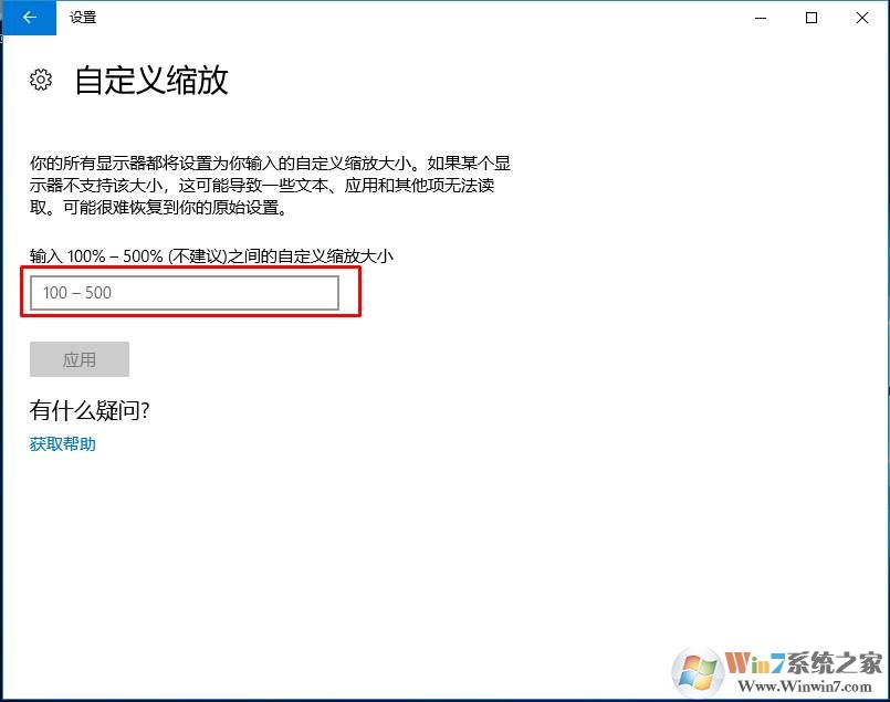 5、然后在100%-500%之間輸入你想要調(diào)整的DPI縮放大小。