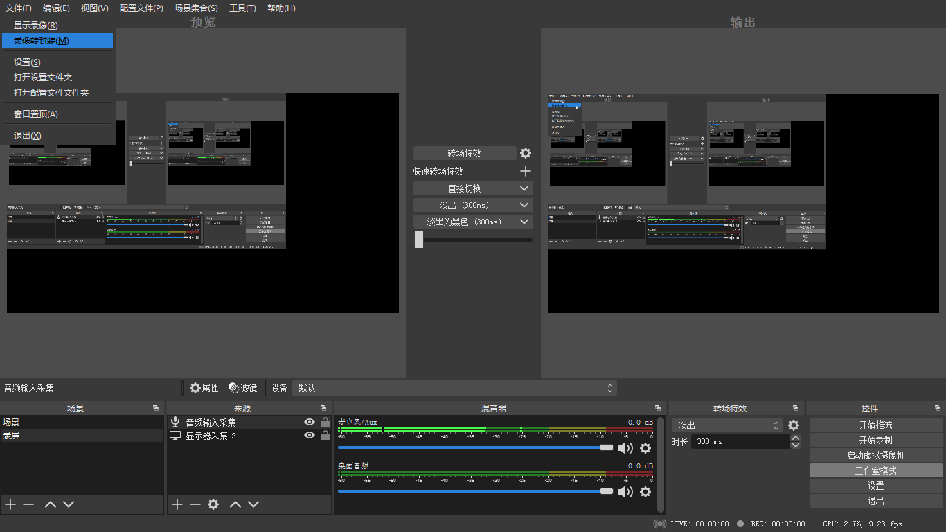 如果使用的mkv格式錄制,想轉換為mp4格式封裝,點擊文件中的錄像轉封裝,在obs錄像欄中選擇要轉換的文件,然后點擊轉換封裝即可。