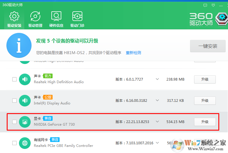 2、如上圖所示,顯卡可以升級,幾升級一下驅(qū)動,完成之后重啟系統(tǒng)