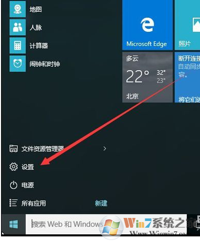 1、點(diǎn)擊桌面左下角的“開始”菜單,從彈出的擴(kuò)展菜單列表中點(diǎn)擊“設(shè)置”按鈕。