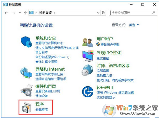 2、打開控制面板后,點擊綠色字體“程序”。