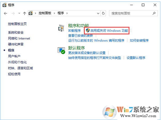 3、在程序界面點擊“啟用或關(guān)閉Windows功能”。