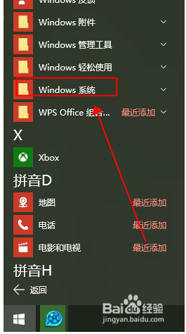 2、在所有應(yīng)用里找到W分組下的Windows系統(tǒng)。