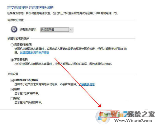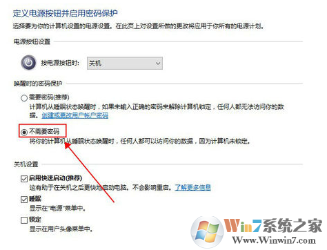 7、在喚醒時的密碼保護(hù)的選項(xiàng)里選擇不需要密碼。